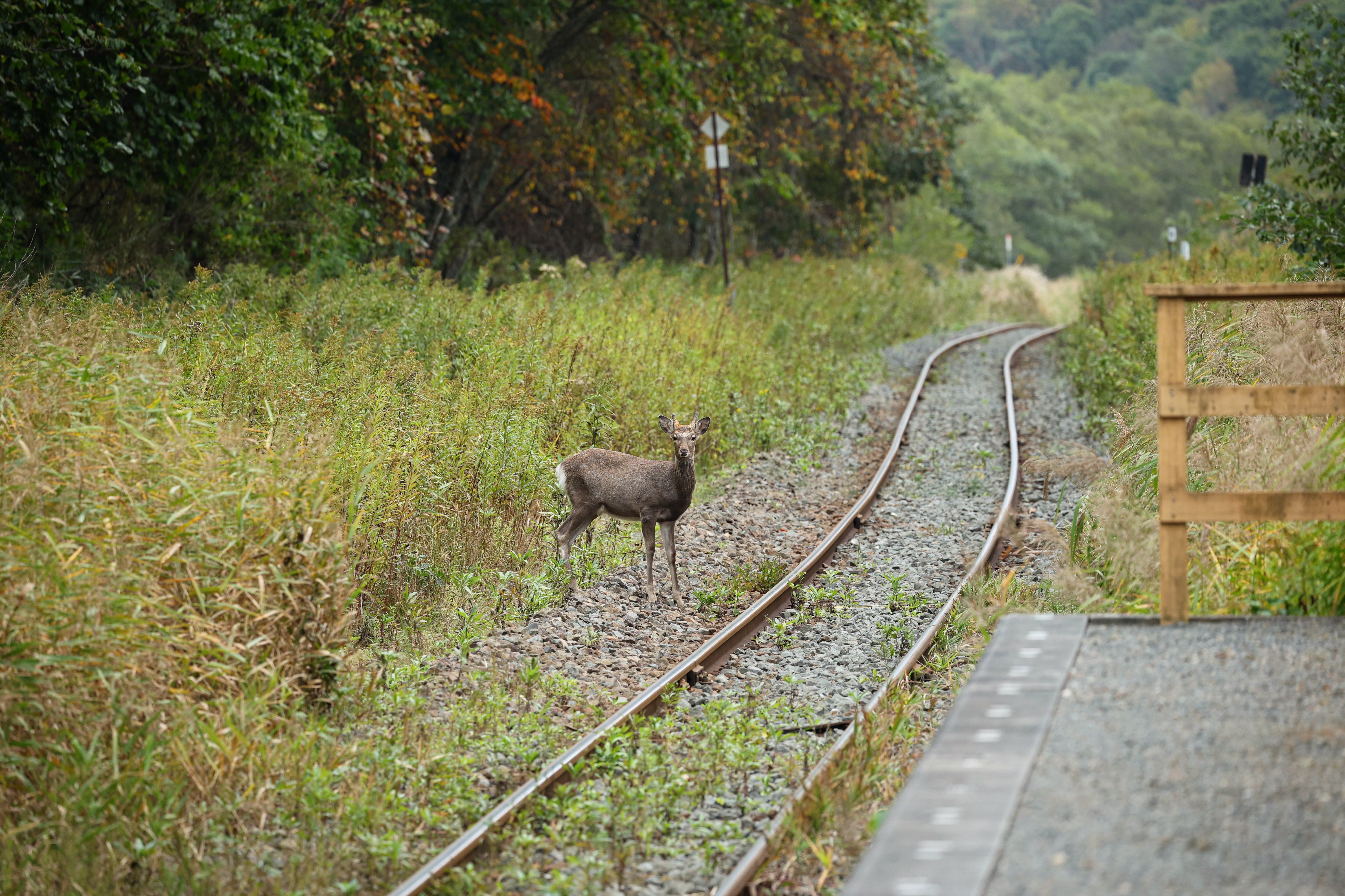 Deer on tracks, Hokkaido, Japan.